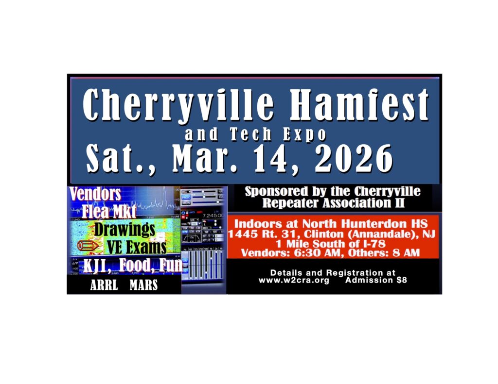 The Cherryville Repeater Association is an active club of licensed amateur radio operators and their families, most of whom live within 50 miles or so of Flemington, New Jersey, but some of whom live as far away as Bono, Arkansas. Membership is open to any ham, and potential new members are encouraged to come meet us at club meetings. Based in Hunterdon County, New Jersey, and founded in 1973, CRA is an ARRL Special Services Club which provides “Community Service Through Communication.” Providing logistical coordination for parades, health and welfare communication for triathalons, walkathons, horse trials, boy scout activities, school activities, and other places people gather keeps our members busy throughout the year.